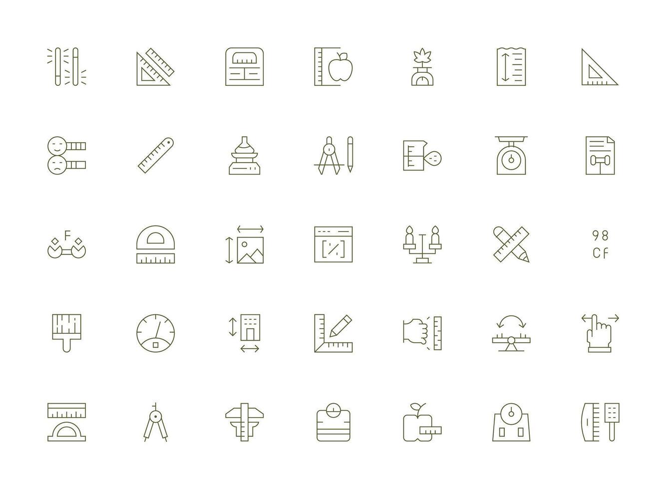 Scale Icon Set with 35 Light Line Graphics Responsive Icon Set for Flexible Layouts Free Vector