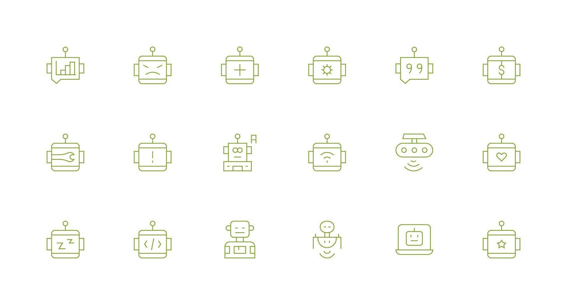 18 Minimal Line Designs for Robot Icons Essential Icons for Rapid UI Building vector