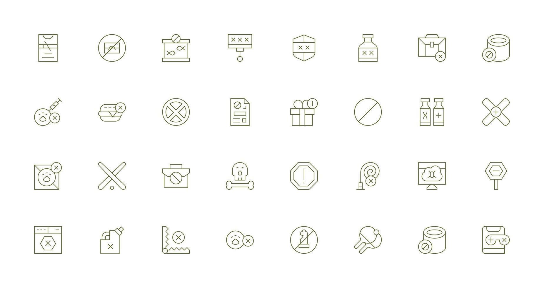 Thin Line Icons from Not Allowed Set with 32 Vectors Icon Set Free Vector