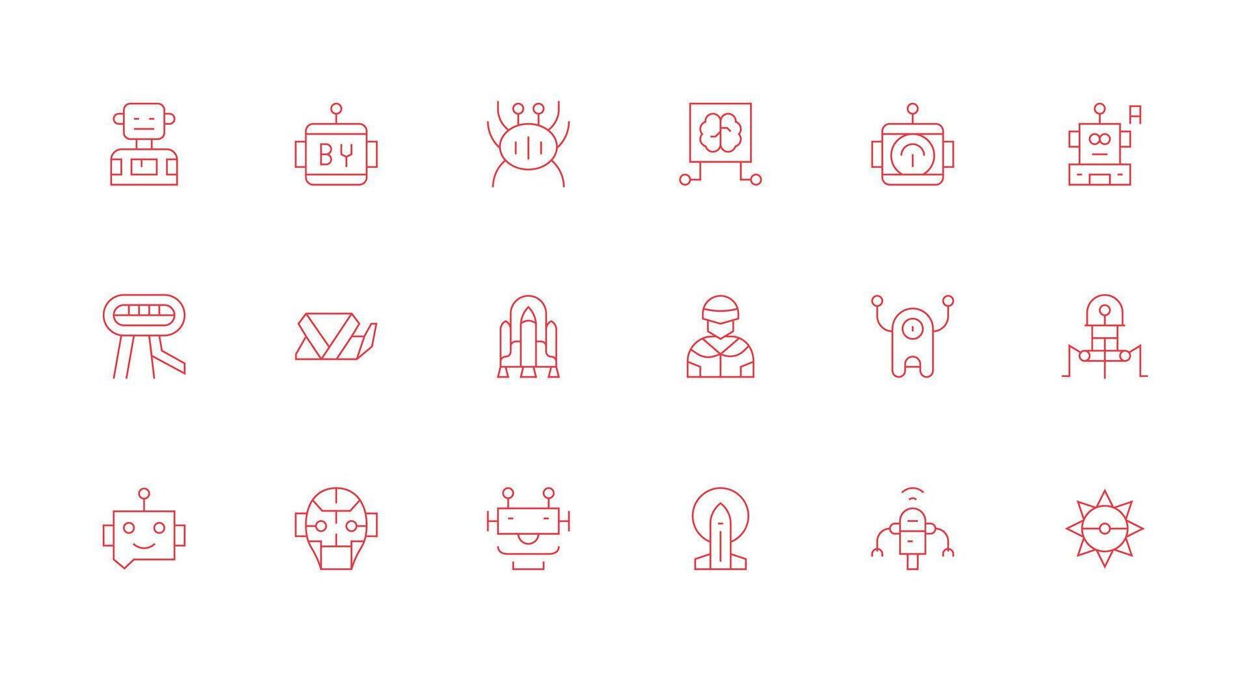18 Icons for Futuristic in Minimal Line Format Functional Icon Series vector