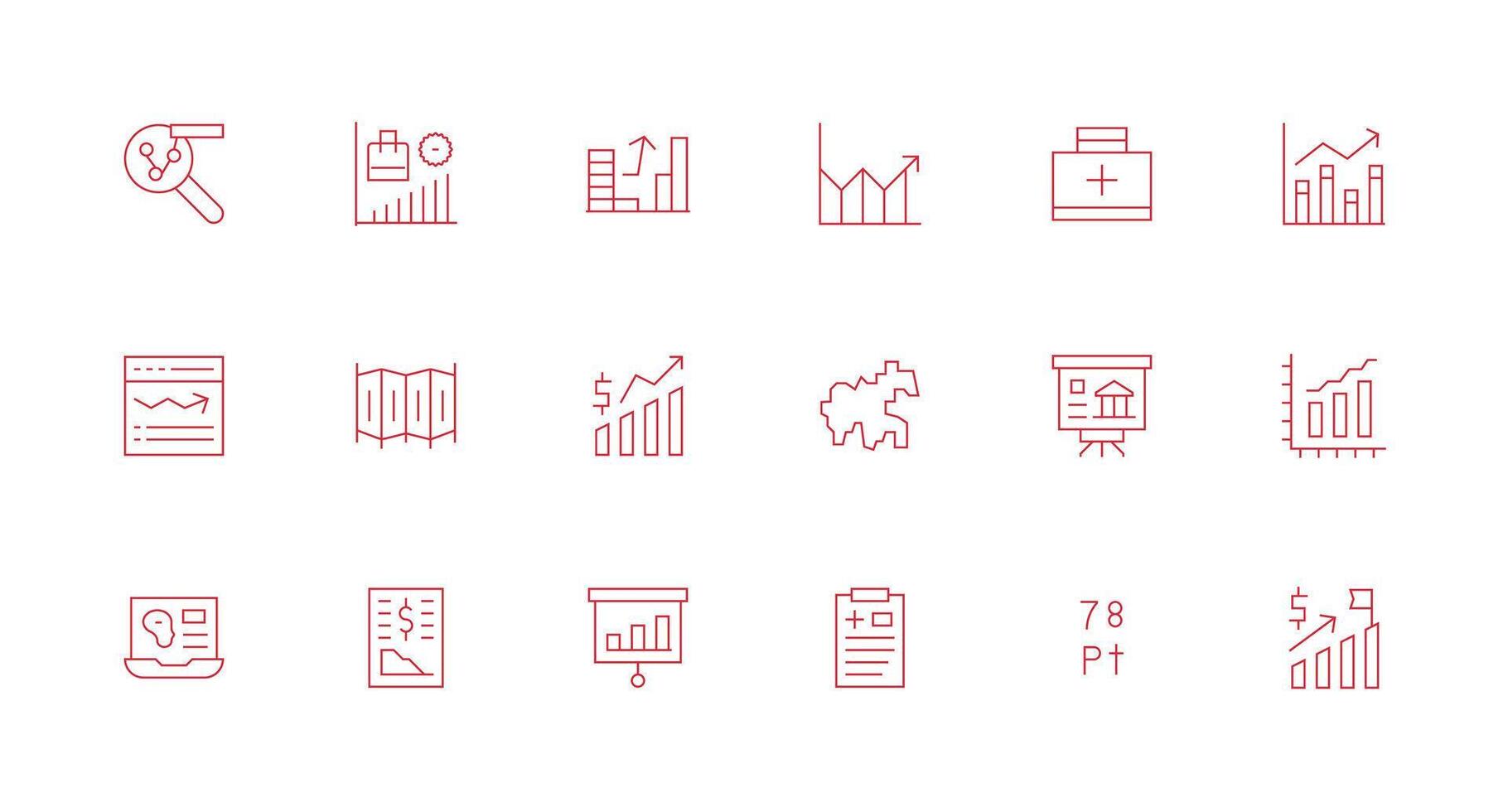 Chart Set with 18 Minimal Line Icons Dashboard Icon Series Free Vector