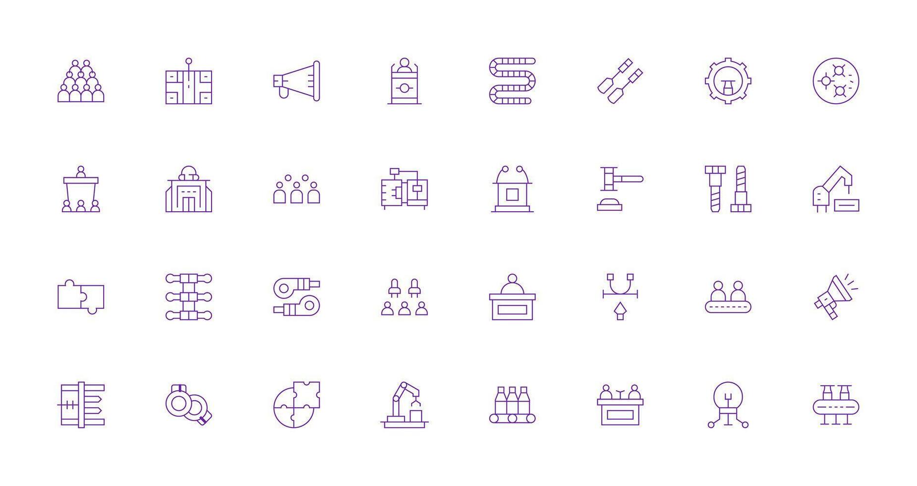 Assembly including 32 Thin Line Illustrations Complete Icon Set for Mobile Apps vector