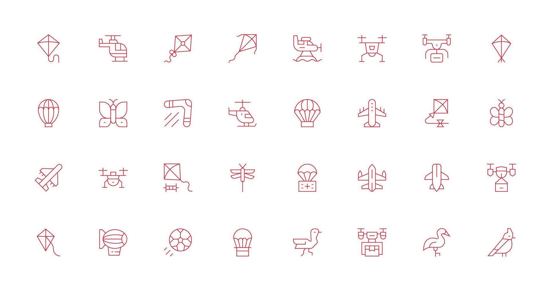 Flying Icon Set with 32 Thin Line Graphics Core Icon Collection for Daily Tasks Free Vector