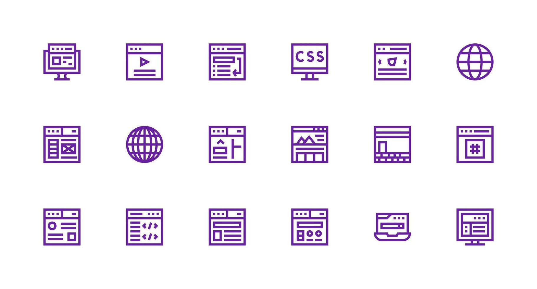 Browser Icon Collection with 18 Strong Stroke Line Designs Pixel Perfect Icon Set vector
