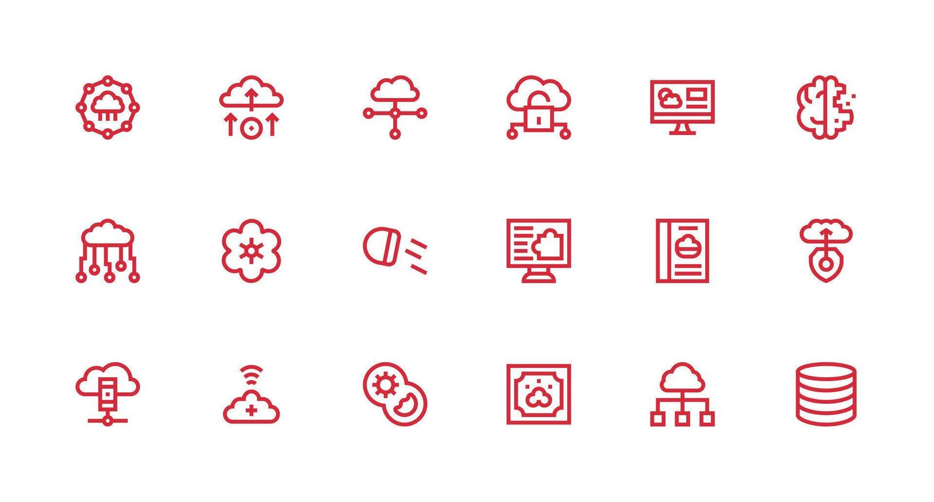18 Strong Stroke Line Vectors for Cloud Computing Theme Essential Icon Set for Teams Free Vector