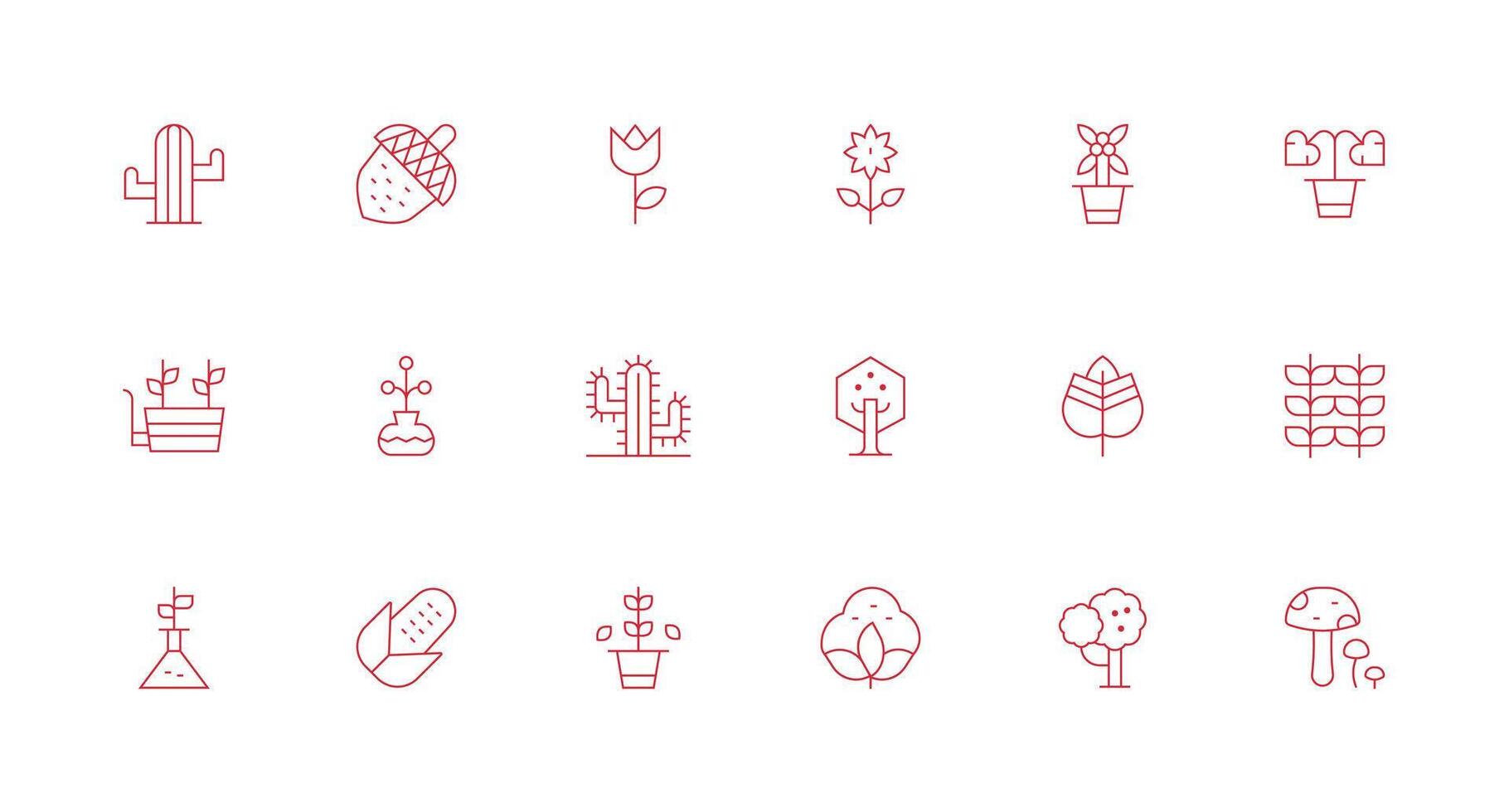 18 Minimal Line Vectors for Botany Theme Full Icon Library for UI Designers