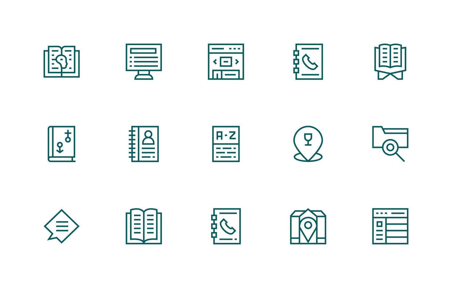 15 Regular Line Designs for Directory Icons Icon Set for Web vector