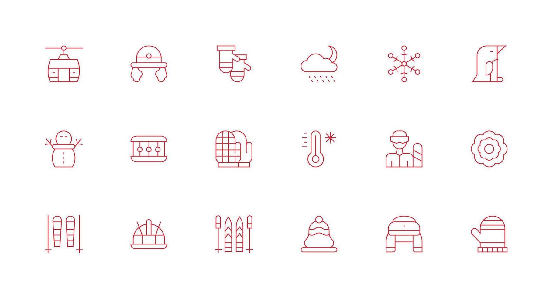 18 Icons for Snow in Minimal Line Format Fully Editable Icon Set for Web vector