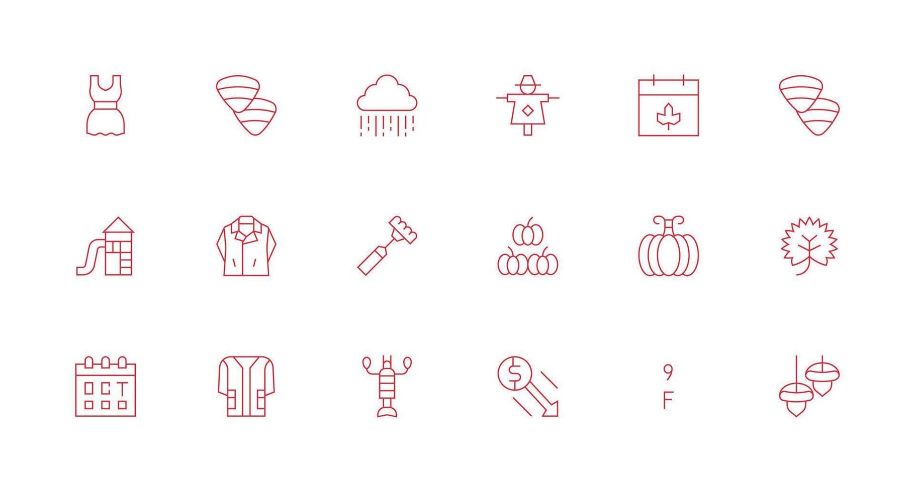 Fall Design Icons featuring 18 in Minimal Line Style Simple Icons for Interface and Wireframes vector