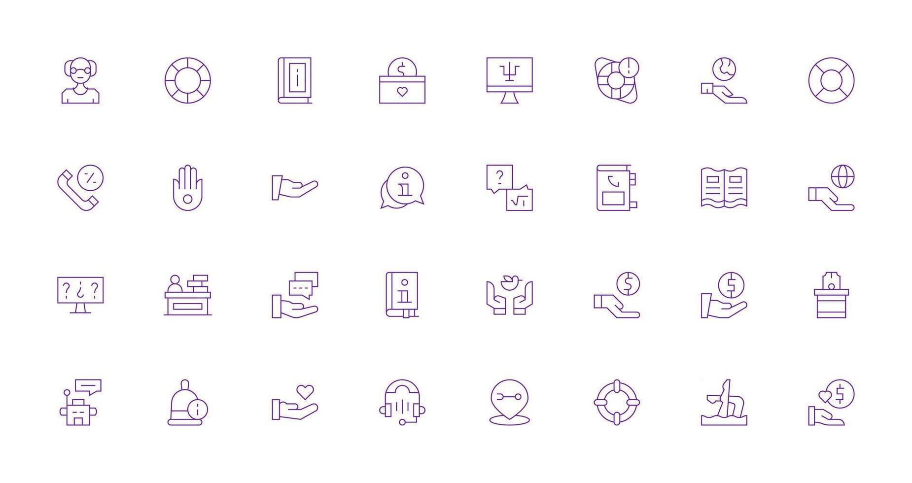 Help Set with 32 Thin Line Icons Essential Icon Set for Teams Free Vector