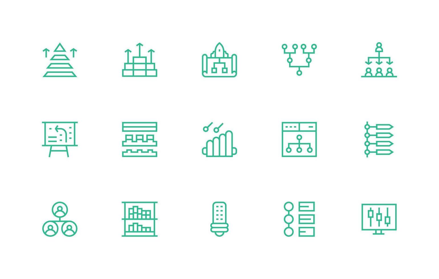 Levels Visual Pack containing 15 Regular Line Icons Responsive Icon Set for Flexible Layouts vector
