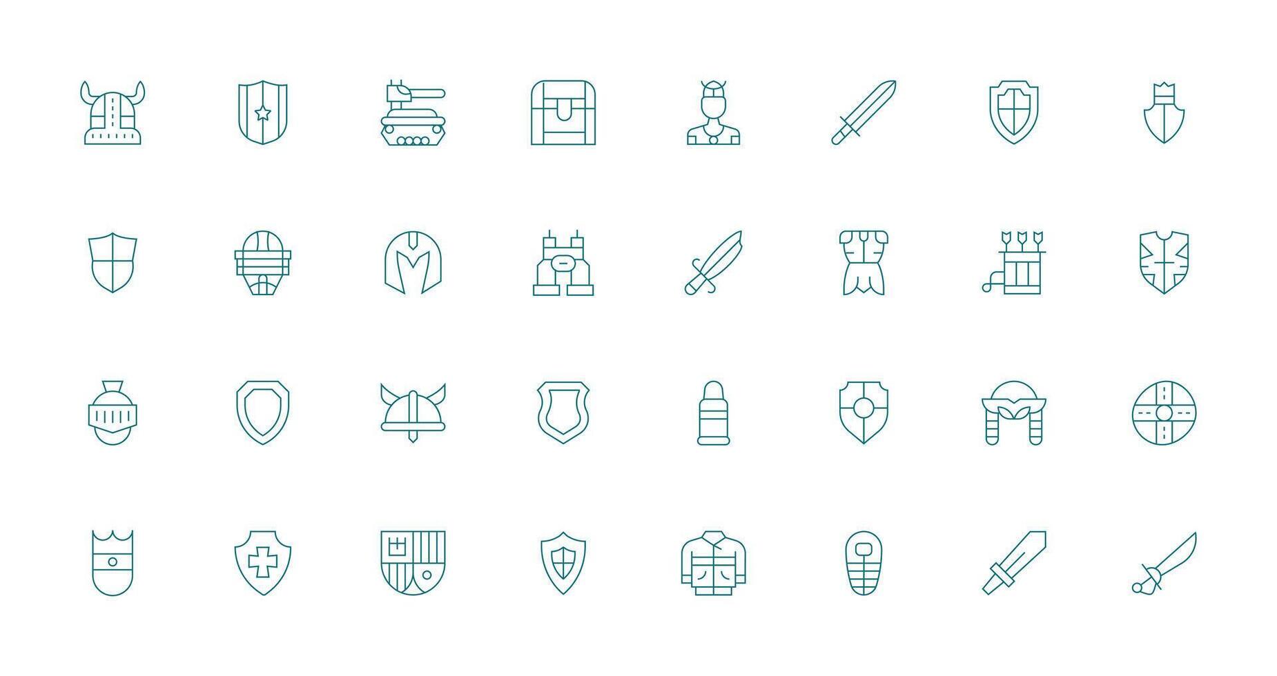 32 Thin Line Icons for Armor Graphics Multi-Purpose Icon Set vector