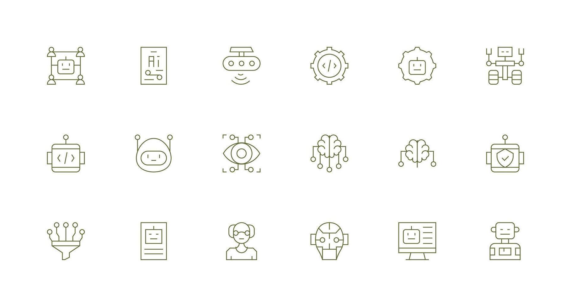 18 Minimal Line Style Icons from Machine Learning Collection Complete Icon Set for Mobile Apps Free Vector