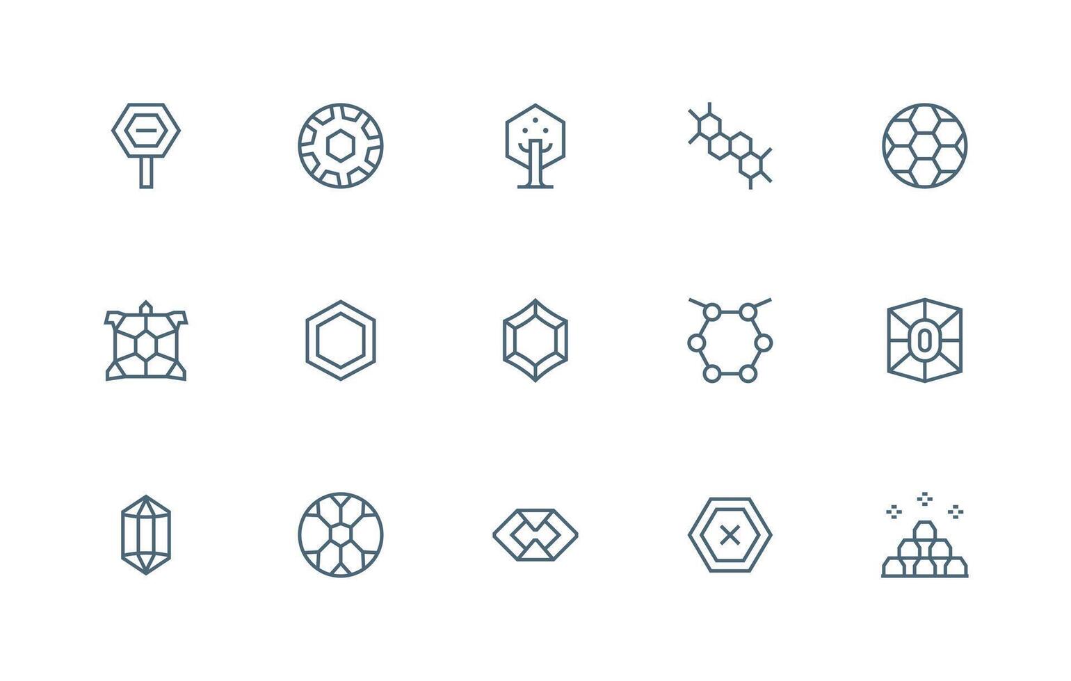 Hexagon Icon Set with 15 Regular Line Graphics Multi-Style Icon Collection vector