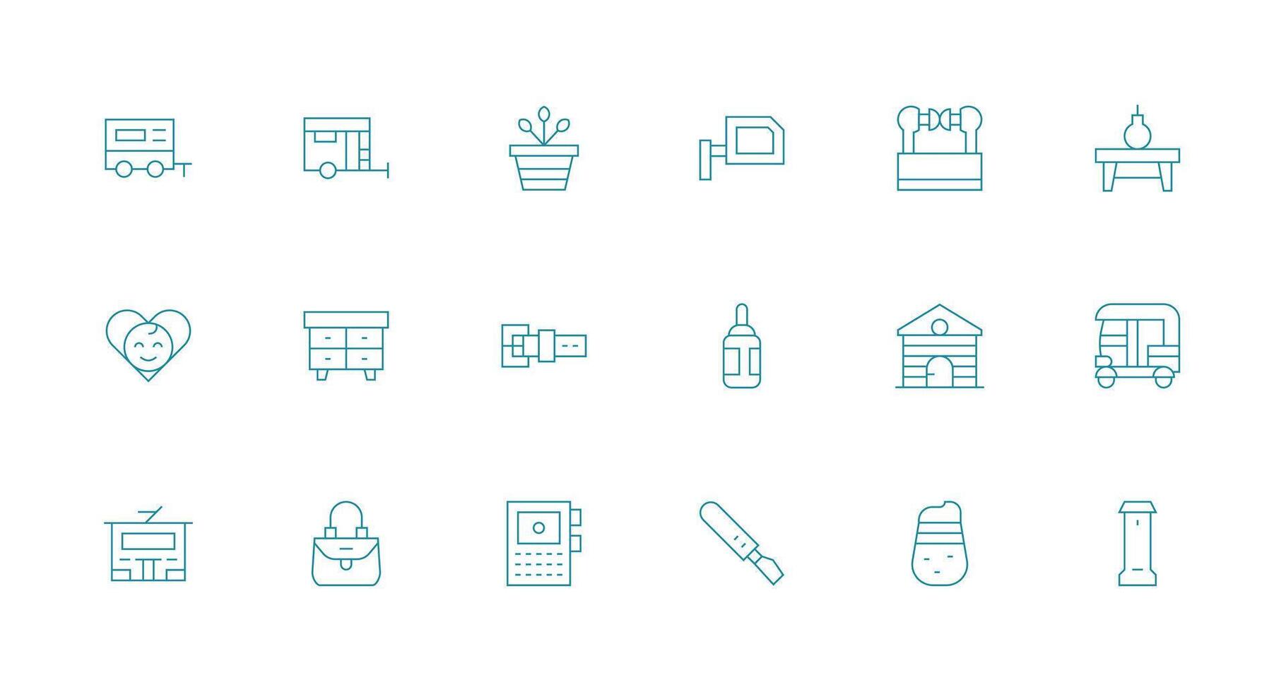 Small Icon Set with 18 Minimal Line Graphics Functional Icon Series Free Vector