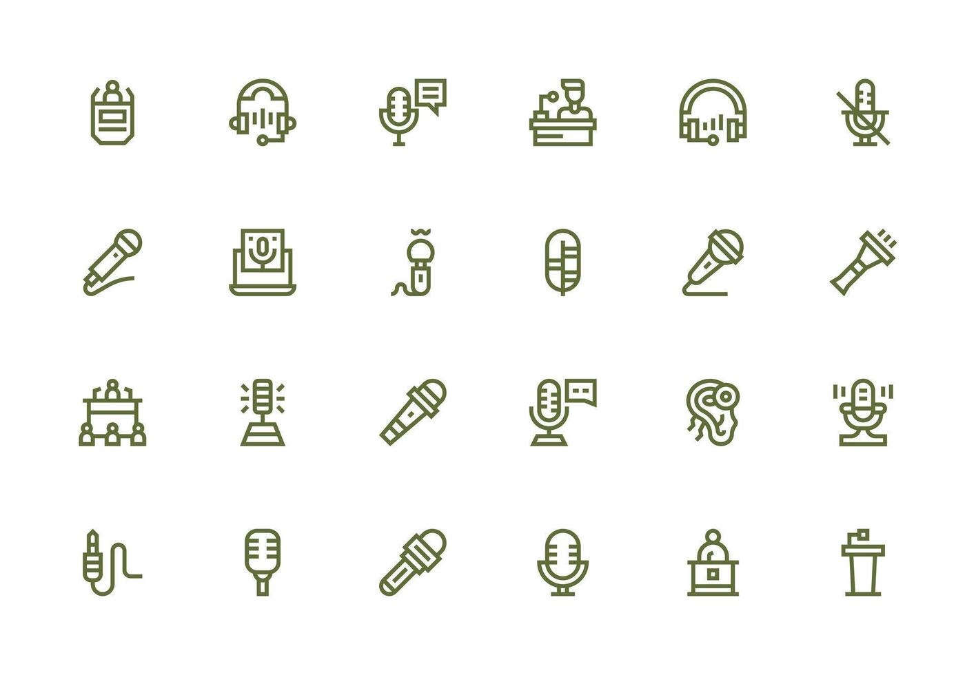 24 Icons for Microphone in Thick Line Line Format Responsive Icon Set for Flexible Layouts Free Vector