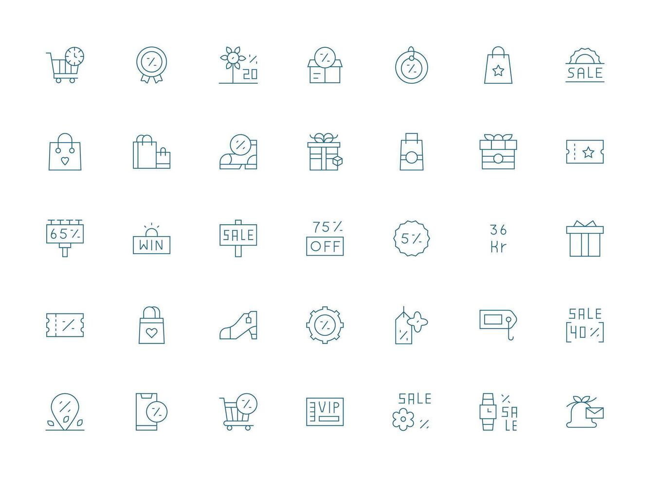Discount Icon Set with 35 Light Line Graphics Interface Icon Collection for Daily Projects Free Vector