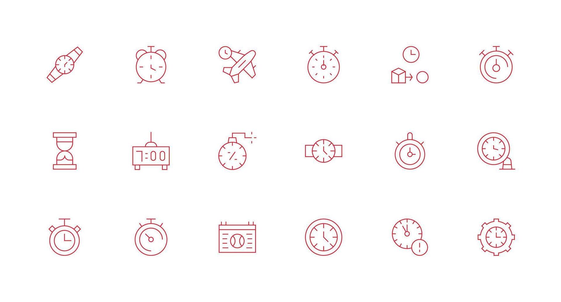 18 Icons for Countdown in Minimal Line Format Scalable Icons for Cross-Platform Interfaces vector