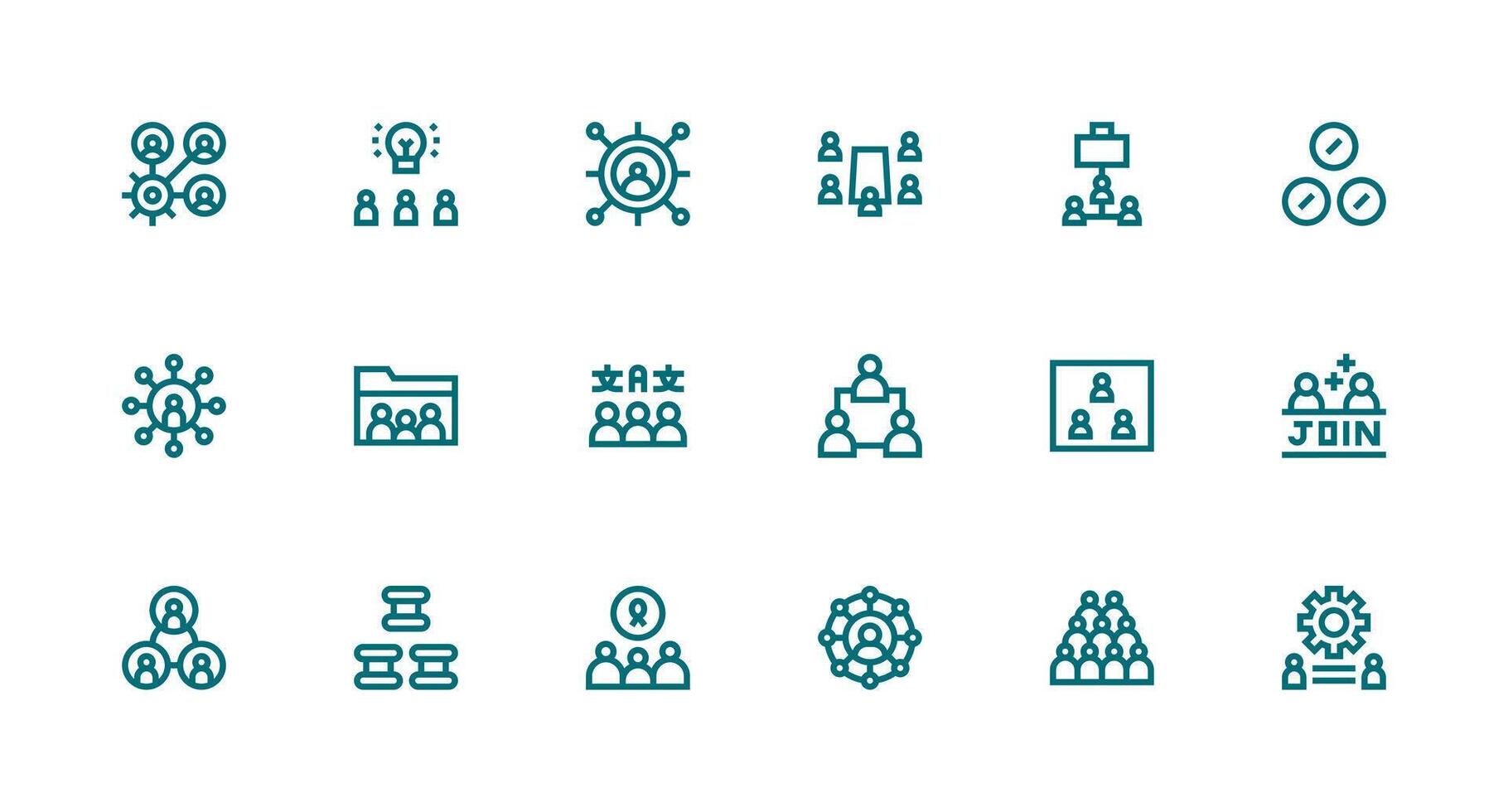 Strong Stroke Line Style Group Icons with 18 Vectors Icon Set for Projects Free Vector