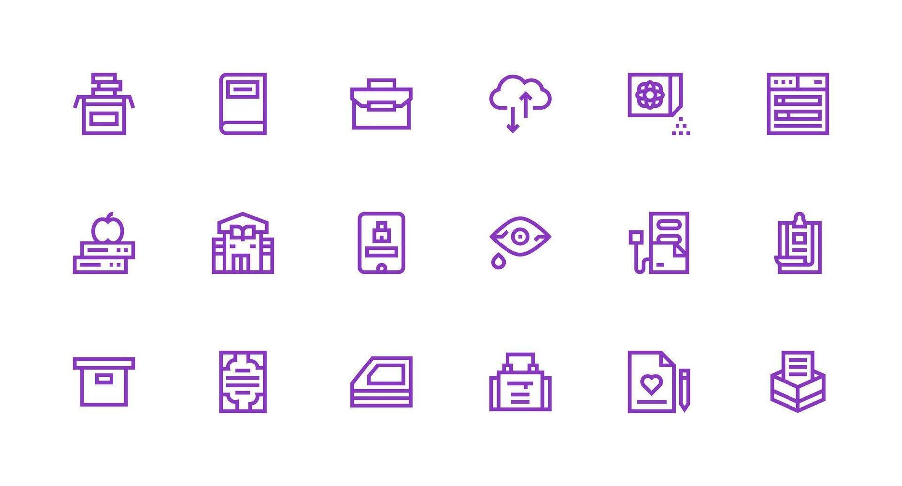 Archive Icon Set with 18 Strong Stroke Line Graphics Versatile Icon Collection for Designers Free Vector