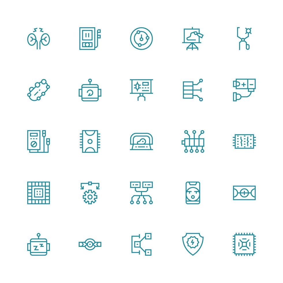 25 Icons for Circuit in Medium Stroke Outline Format Icon Set for Projects vector