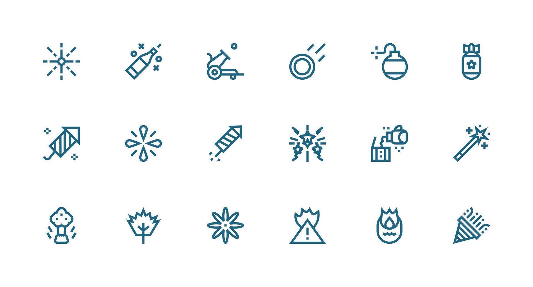 18 Explosion Icons in Strong Stroke Line Aesthetic Flexible Icon System for Web Interfaces vector
