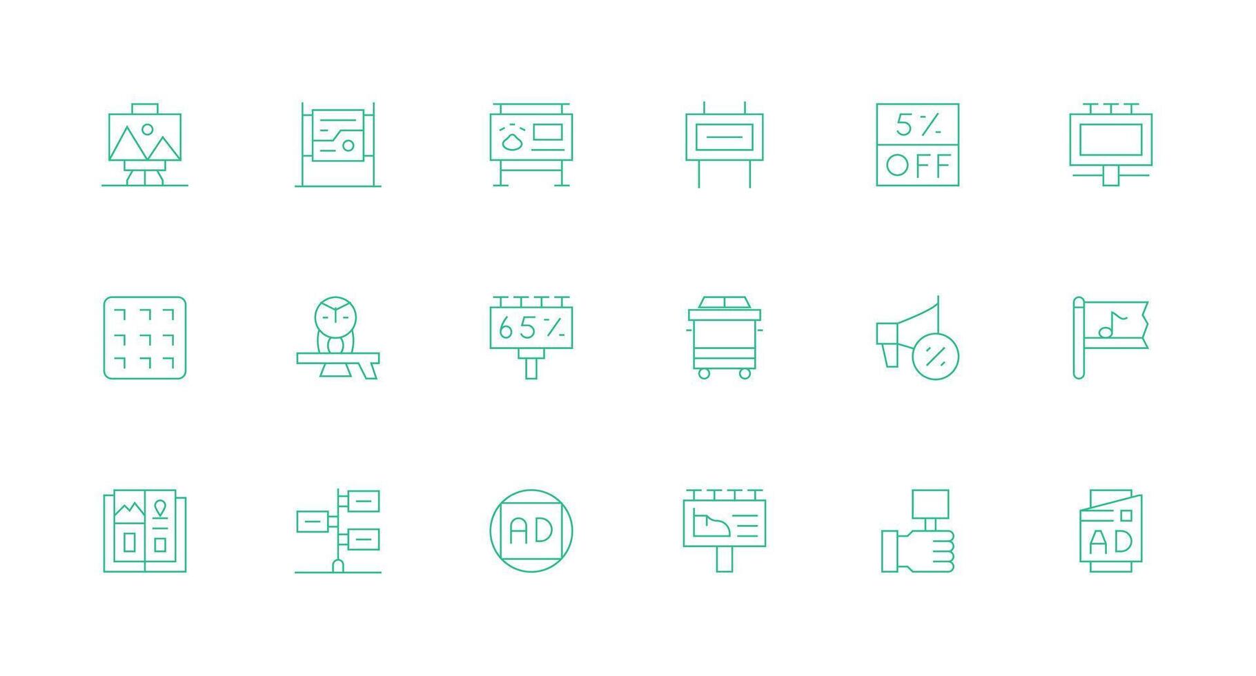 Poster featuring 18 Icons in Minimal Line Design UI and UX Focused Icon Collection vector