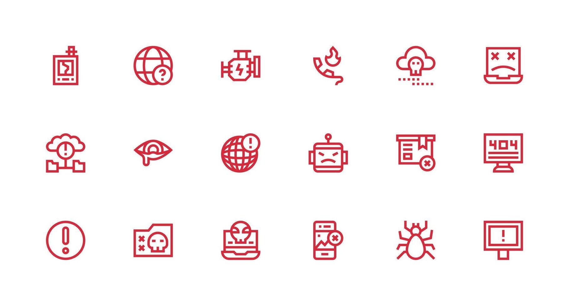 18 Strong Stroke Line Icons for Error Graphics Multi-Style Icons for Creative Projects Free Vector