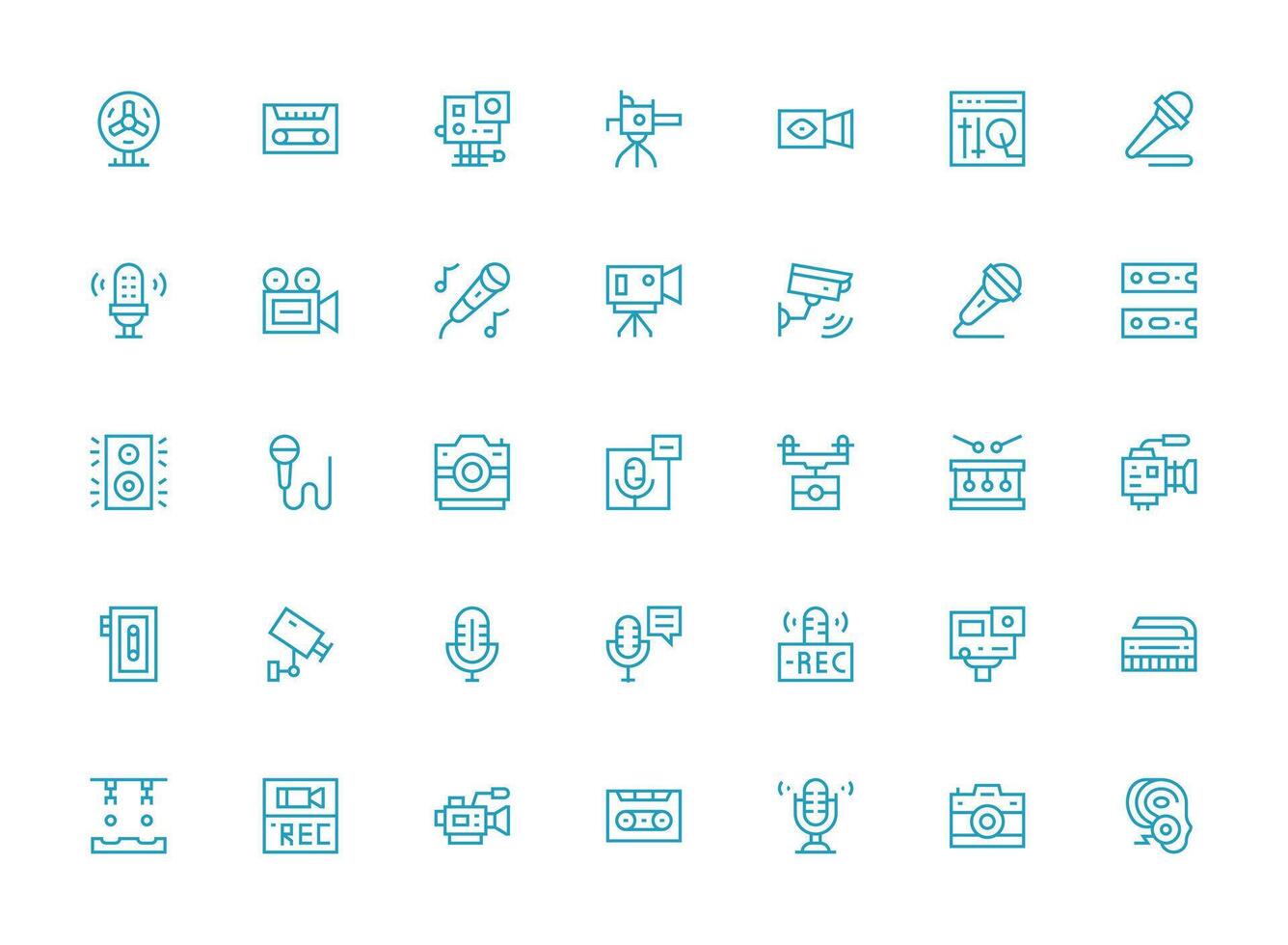 Recording Set with 35 Regular Clean Line Icons Minimal Icon Set for Interface Projects Free Vector