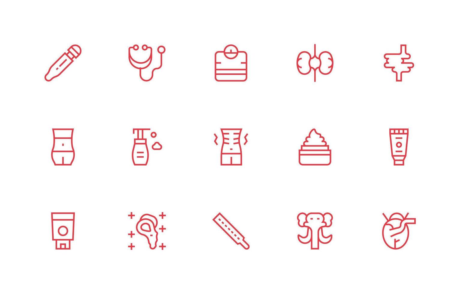 Body Icon Set with 15 Regular Line Graphics Flexible Icon System for Web Interfaces vector