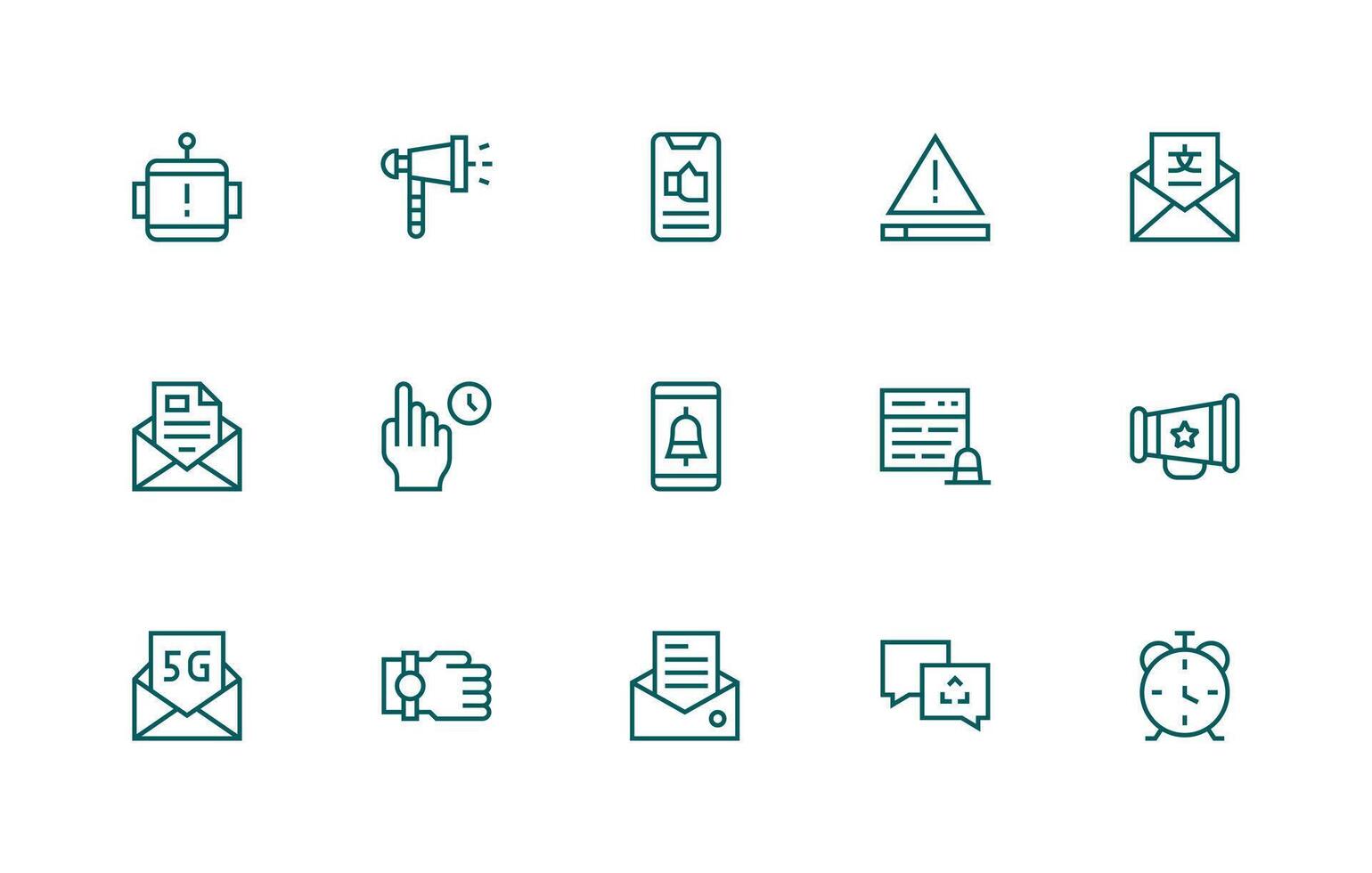 Notification Design Icons featuring 15 in Regular Line Style Compact Icon Set Free Vector