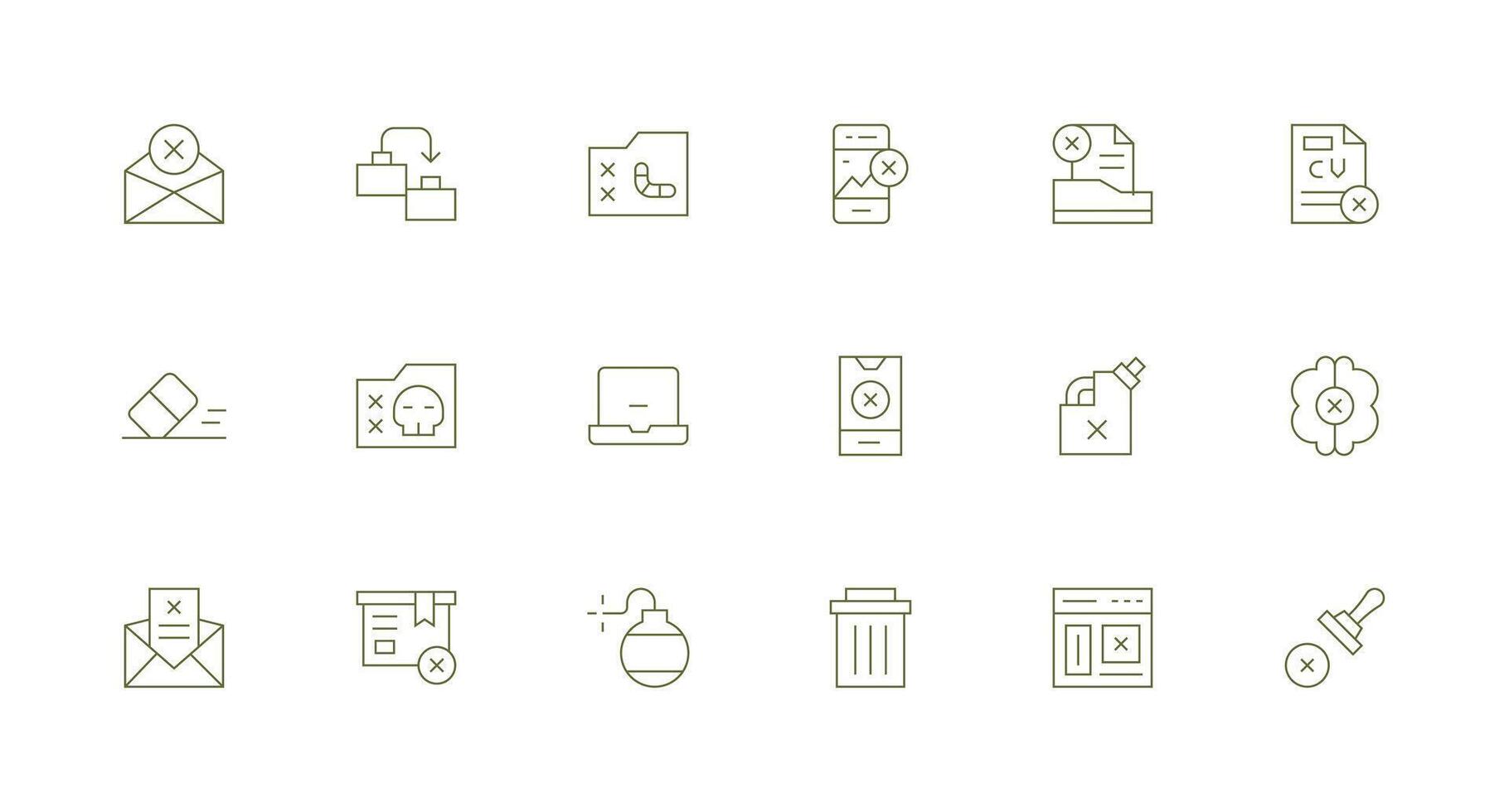 Delete Design Icons featuring 18 in Minimal Line Style Dashboard Icon Series Free Vector