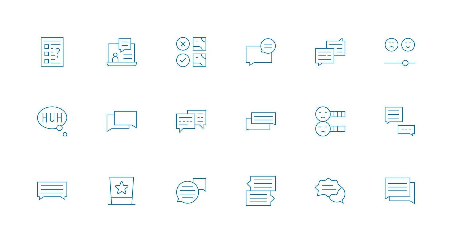 Feedback Form Icon Set with 18 Minimal Line Graphics Icon Pack for Various Themes Free Vector