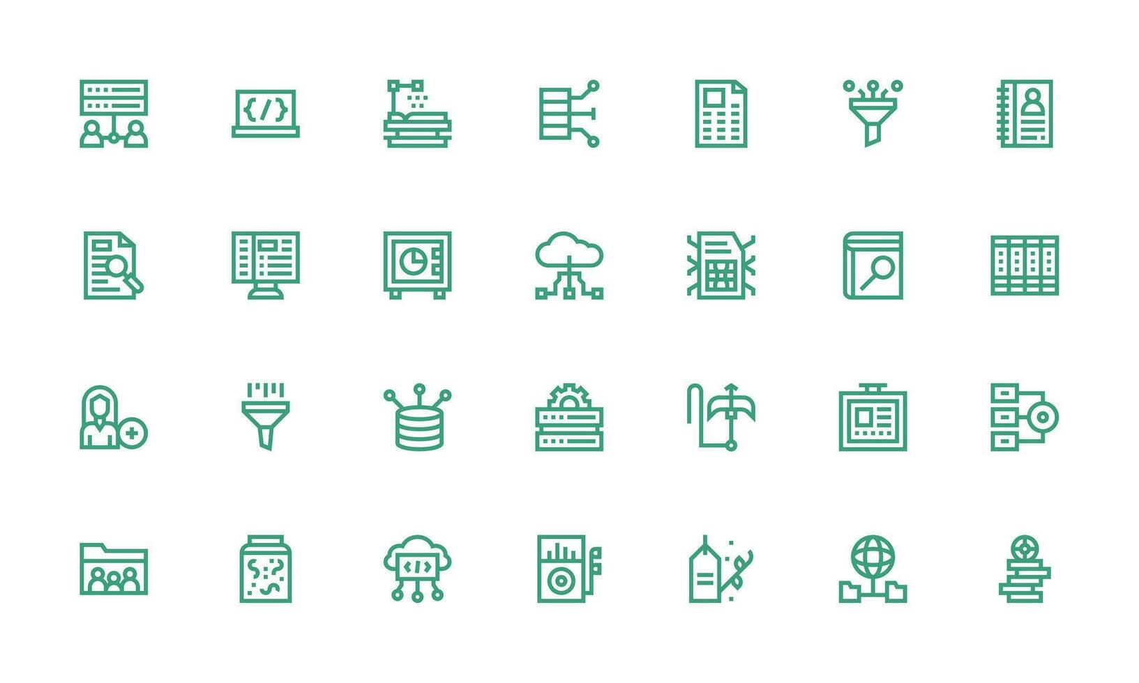 Database Design Icons featuring 28 in Bold Line Style All-Purpose Icon Design Pack Free Vector
