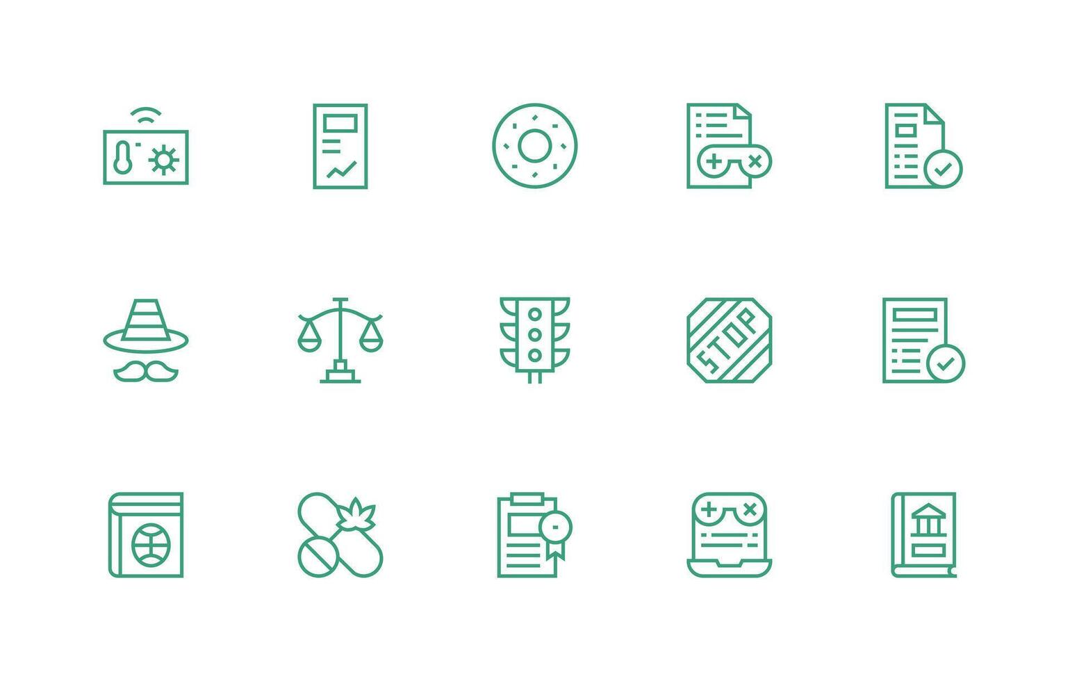 Regulation Icon Collection with 15 Regular Line Designs Sharp Icons for Presentations vector