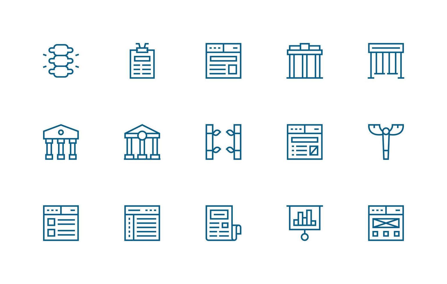 Column Design Icons featuring 15 in Regular Line Style Neatly Designed Icons for Web Platforms vector