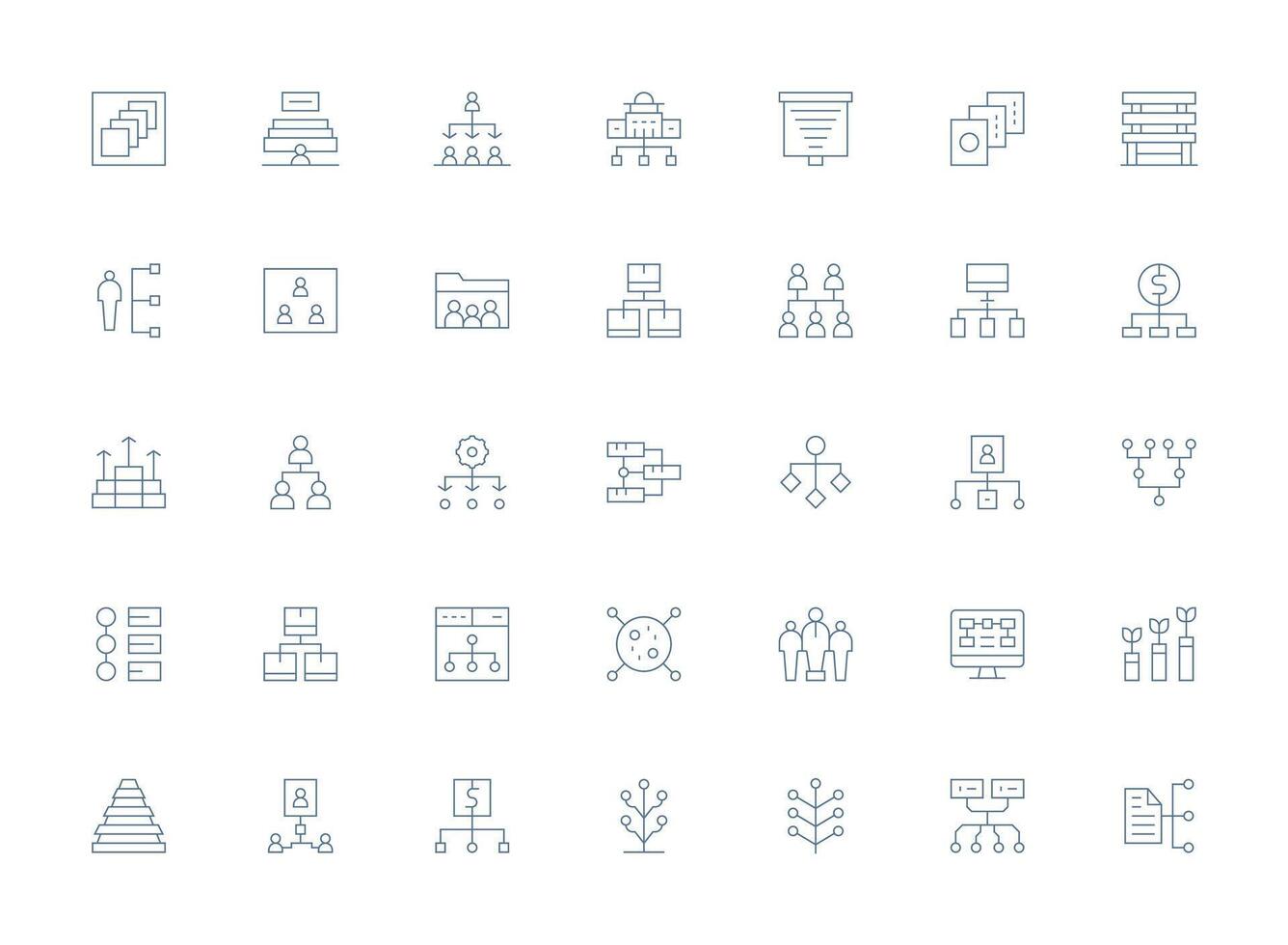 Hierarchy Set with 35 Light Line Icons Reusable Icon Set Free Vector