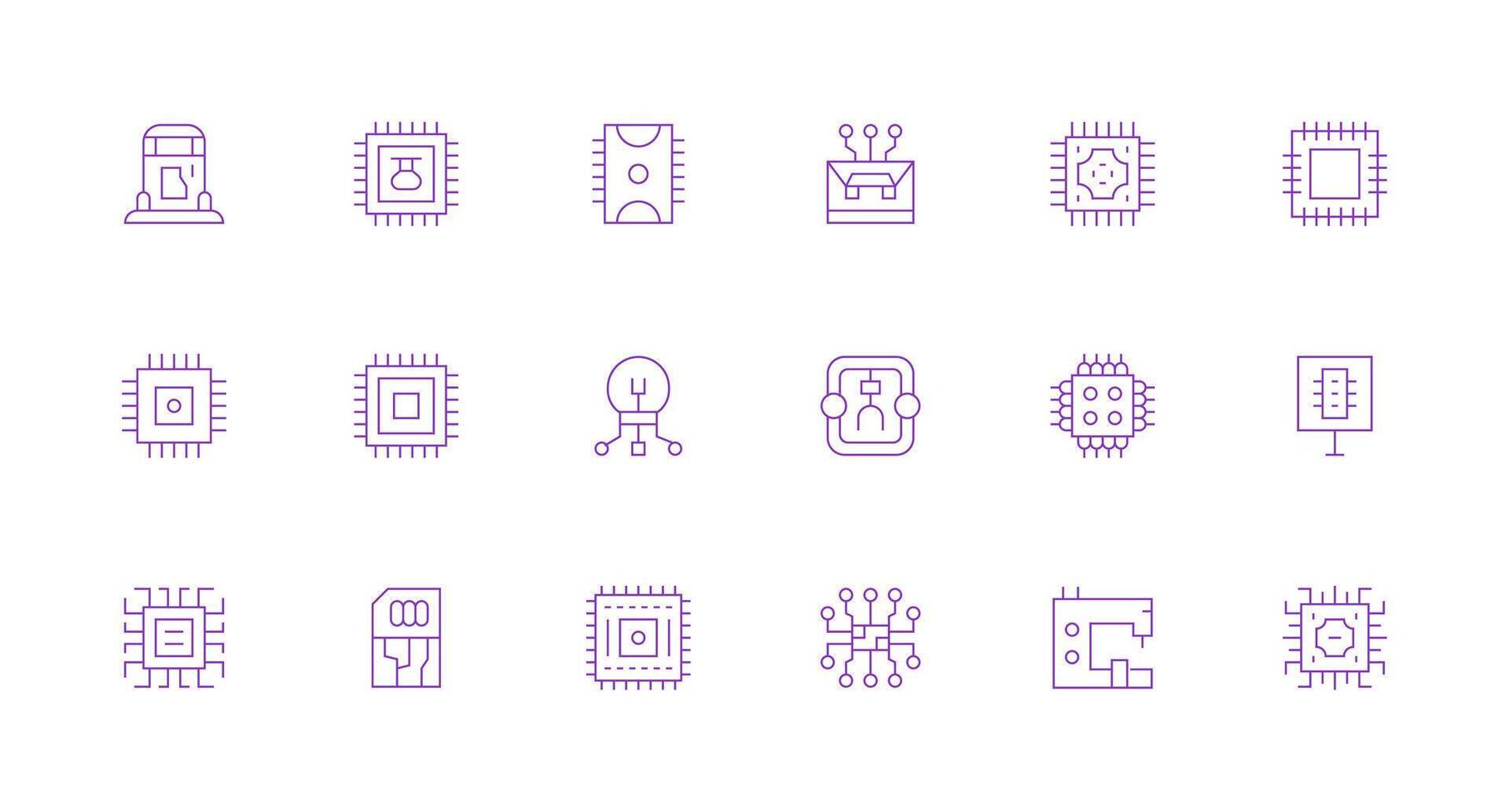 Minimal Line Icons from Microchip Set with 18 Vectors Simple Icon Pack Free Vector