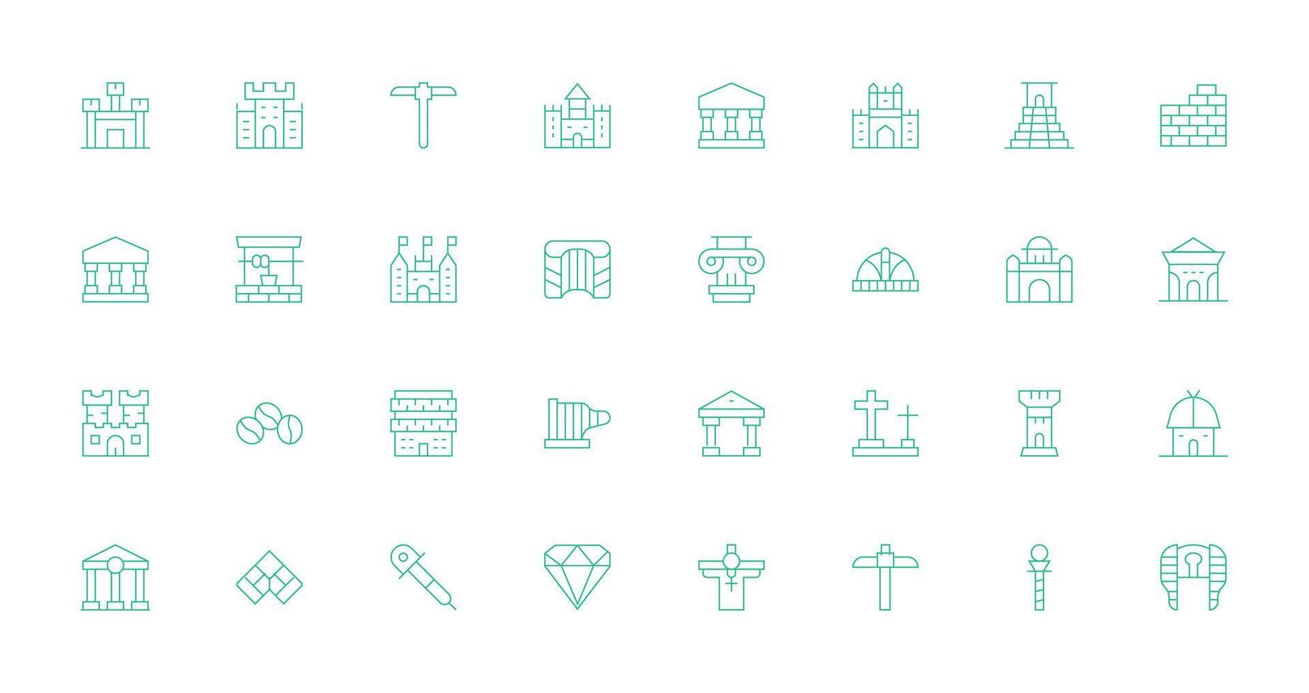 Stone Icon Set with 32 Thin Line Graphics Design Ready Icon Set for Teams Free Vector