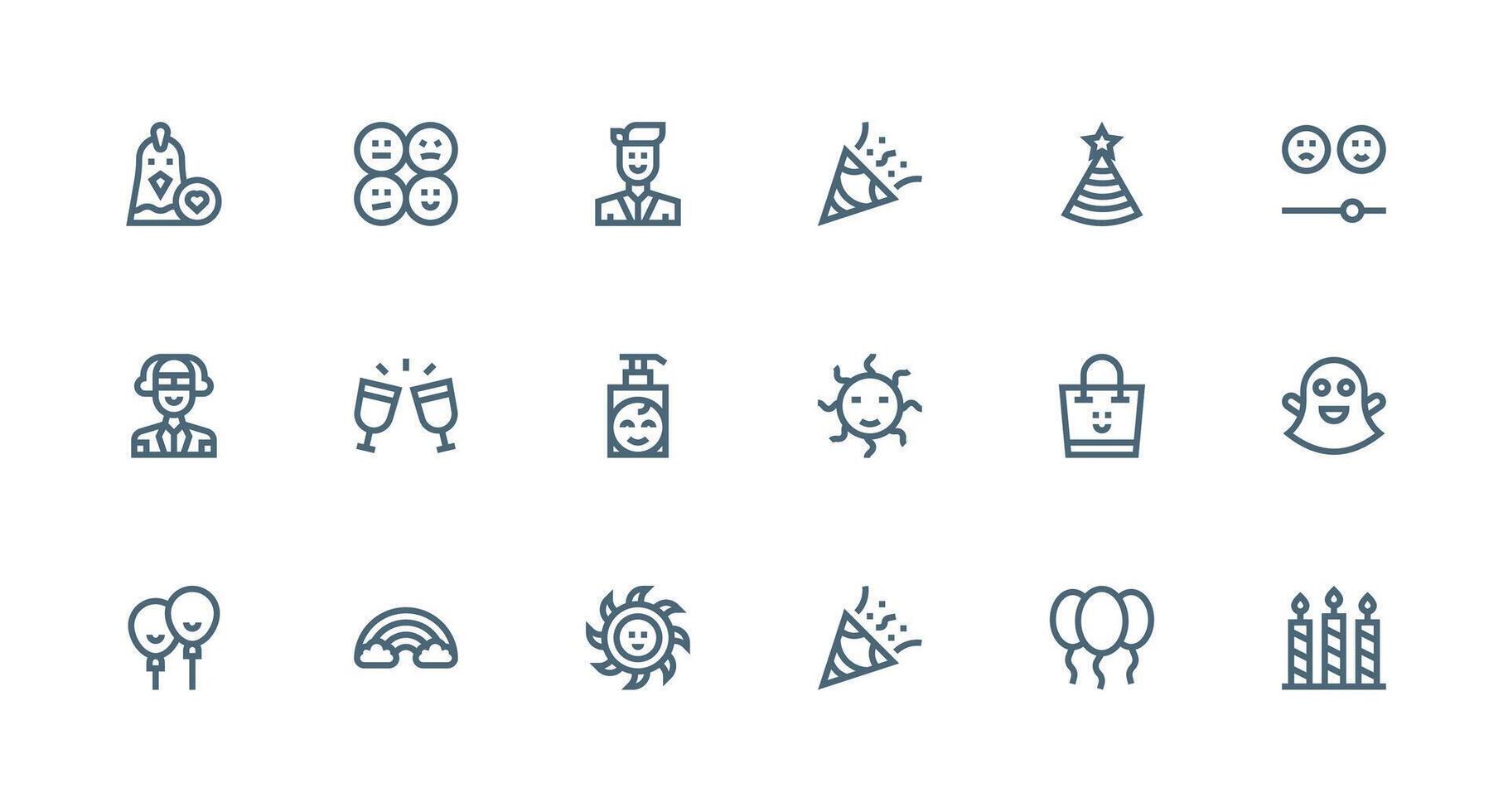 Happy featuring 18 Icons in Strong Stroke Line Design Complete Icon Set for Mobile Apps vector