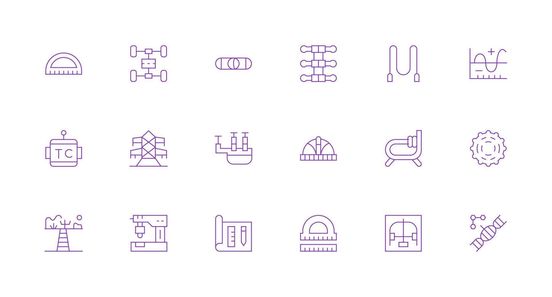 Engineering Set with 18 Minimal Line Icons Pixel Perfect Icon Set vector