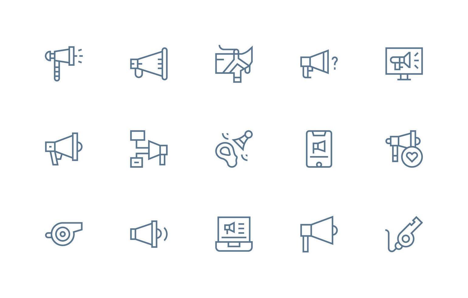 Megaphone Icon Set with 15 Regular Line Graphics Simplified Icon Pack for Visual Tools vector