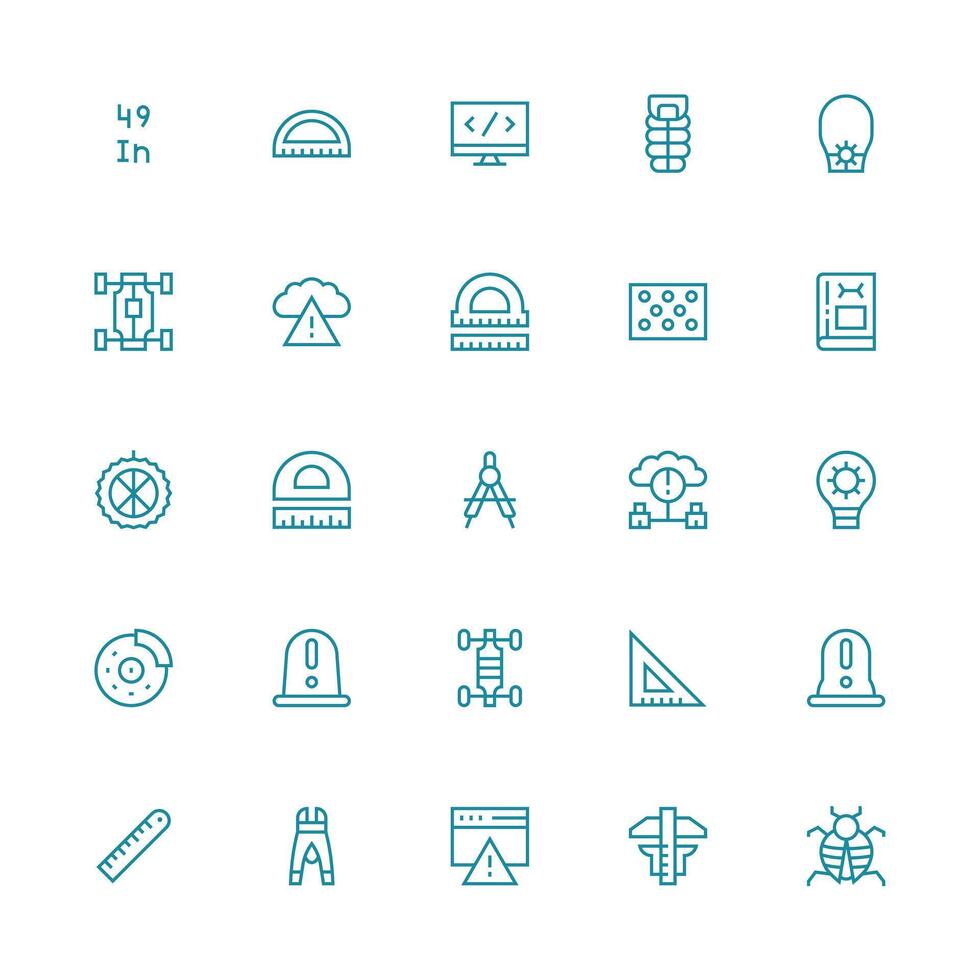 Technical Set with 25 Medium Stroke Outline Icons High-Resolution Icons for Any Platform Free Vector