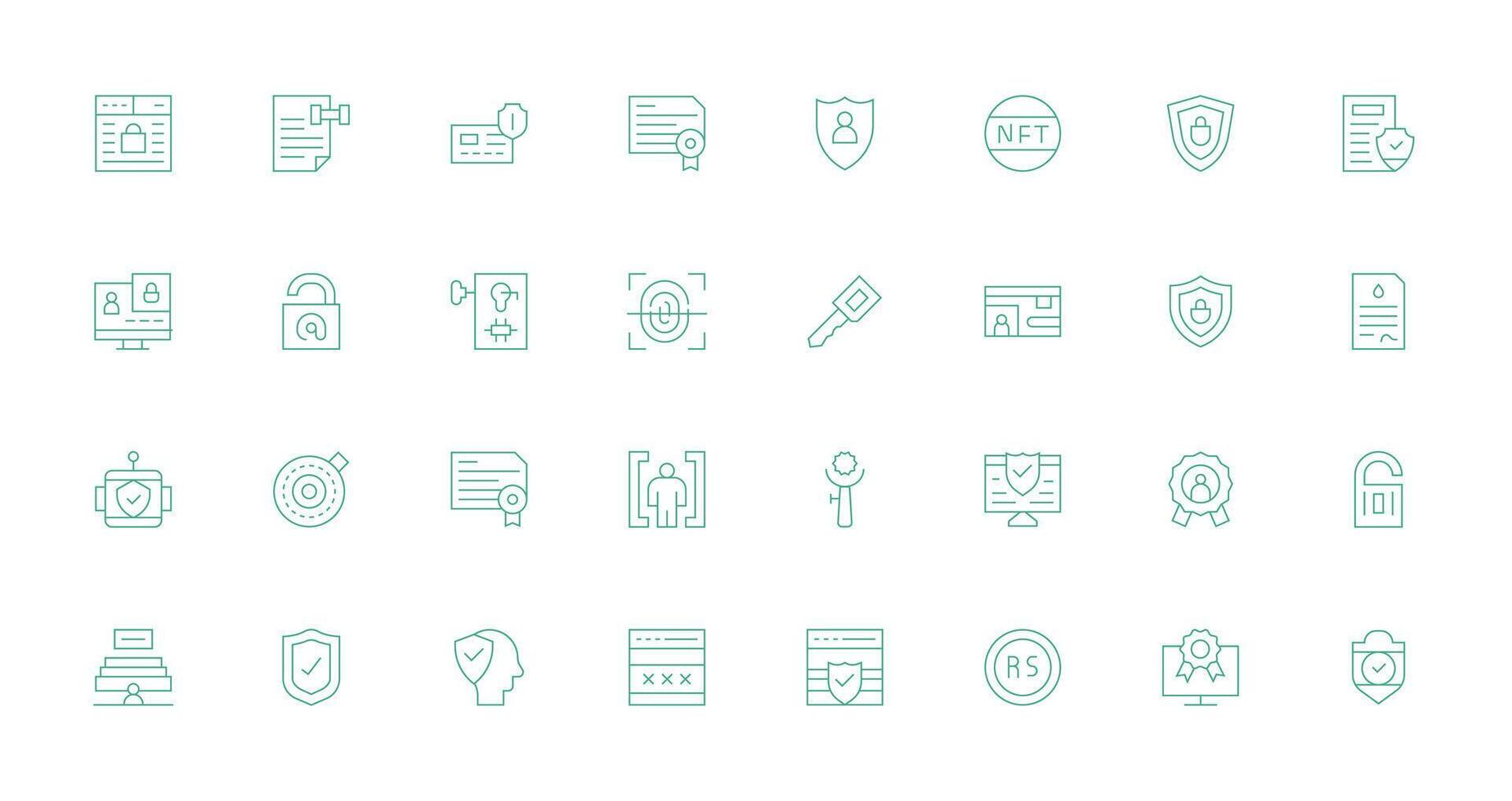Authentication Icon Set with 32 Thin Line Graphics Icon Collection Set vector