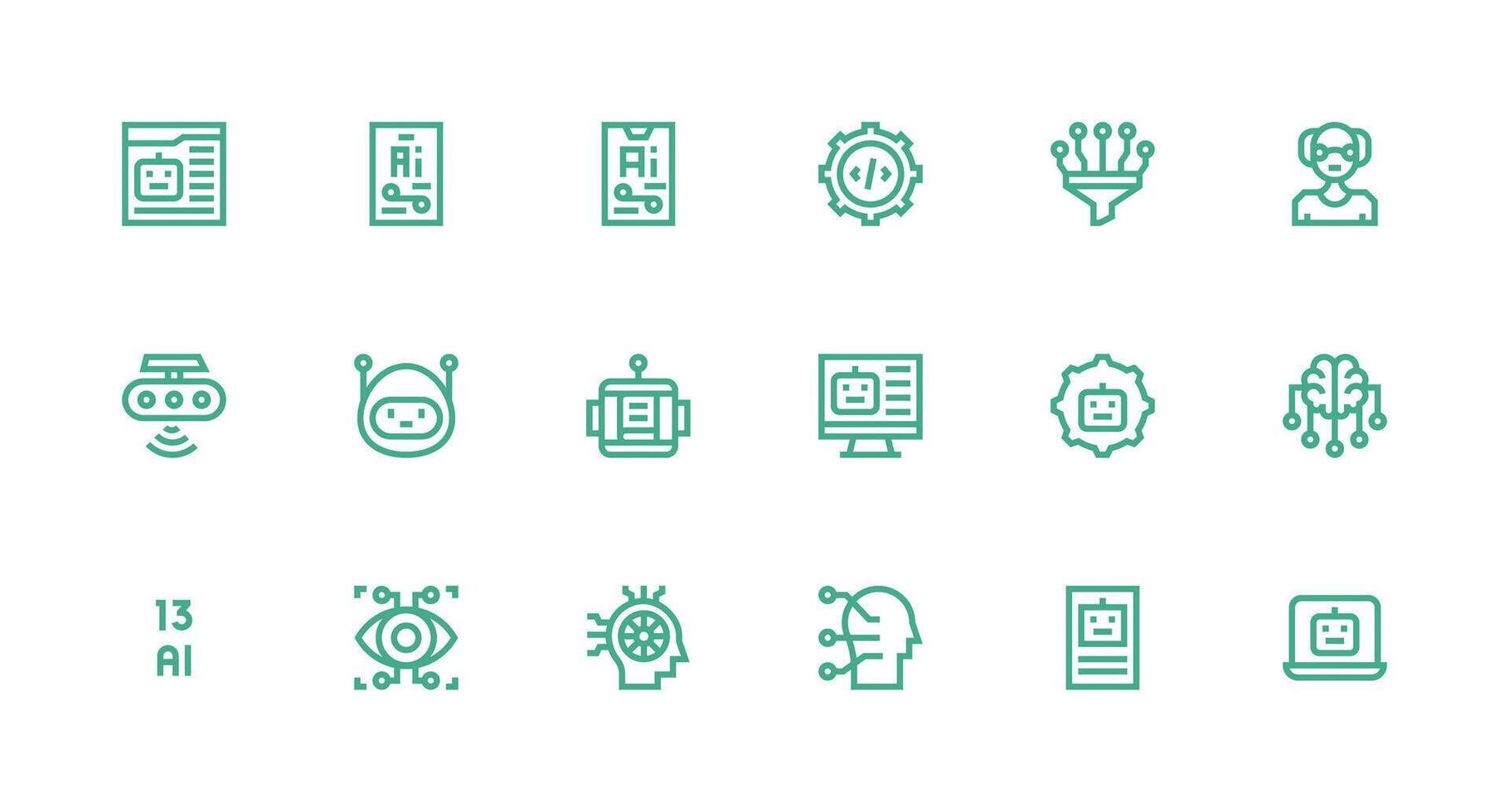 Machine Learning Set with 18 Strong Stroke Line Icons Pixel Perfect Icons for Modern Apps Free Vector