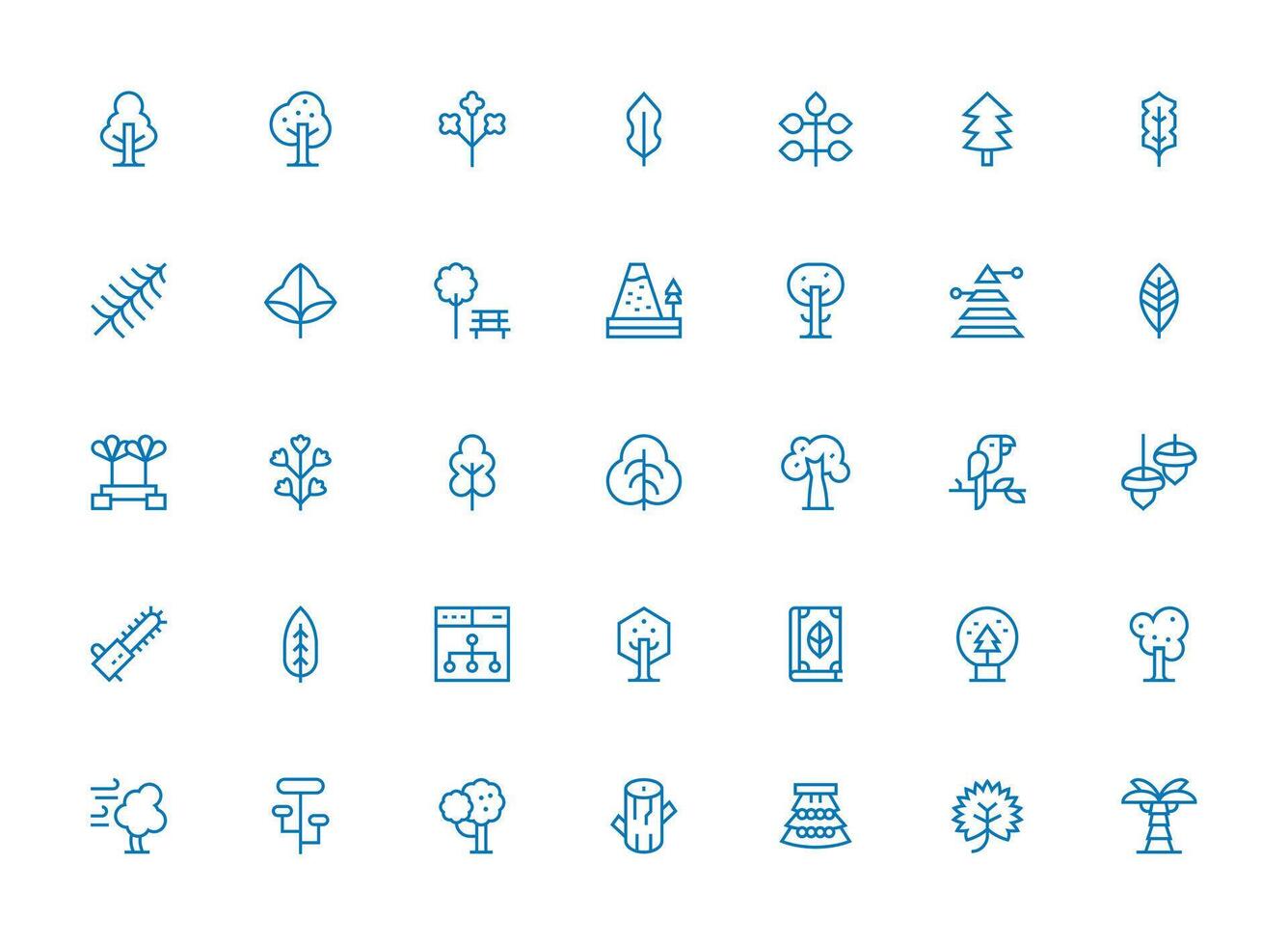 Tree featuring 35 Icons in Regular Clean Line Design Reliable Icons for All Interfaces Free Vector