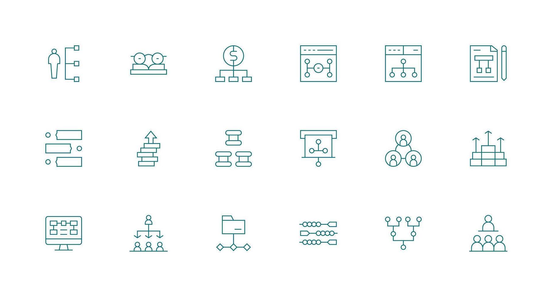 Minimal Line Style Hierarchy Icons with 18 Vectors Balanced Icon Set for Functional Design
