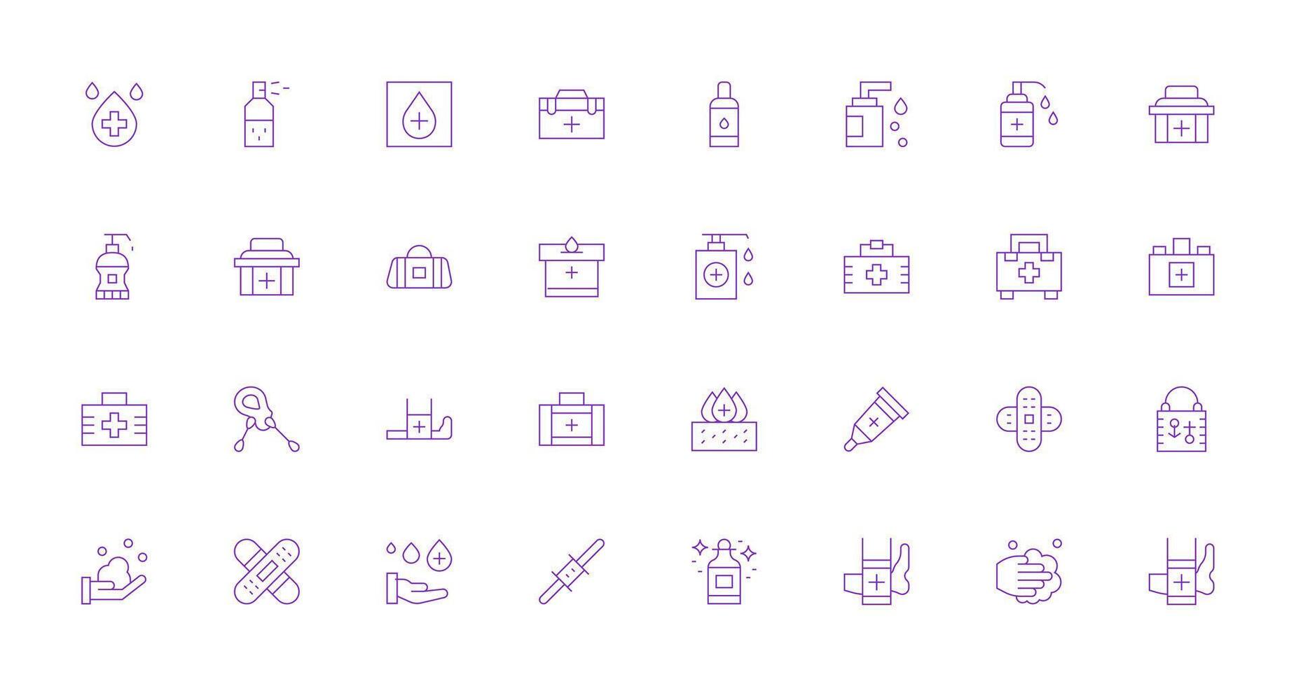 32 Icons for Antiseptic in Thin Line Format Multi-Purpose Icon Set vector