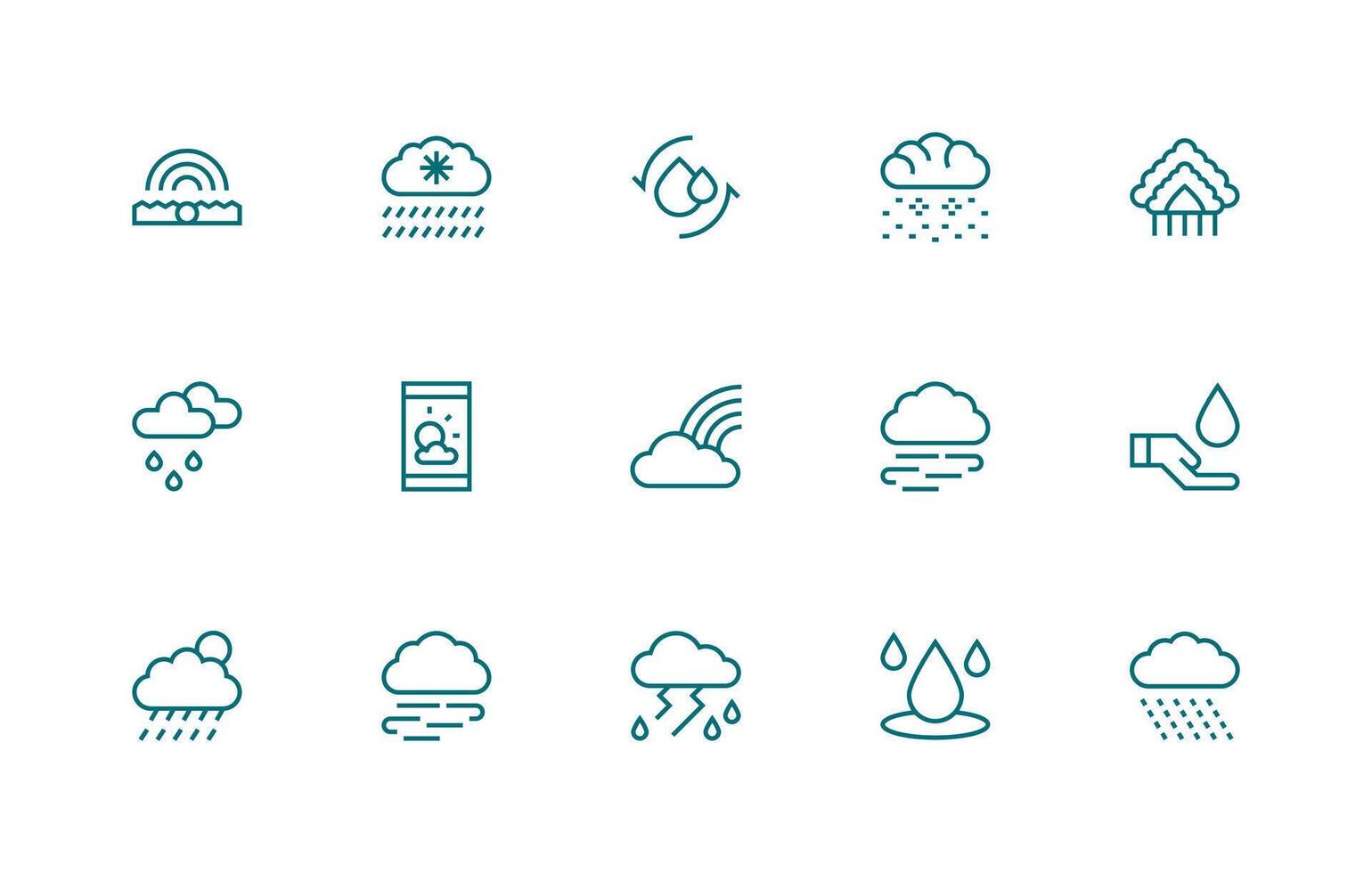 Rain Visual Pack containing 15 Regular Line Icons Fully Editable Icon Set for Web vector