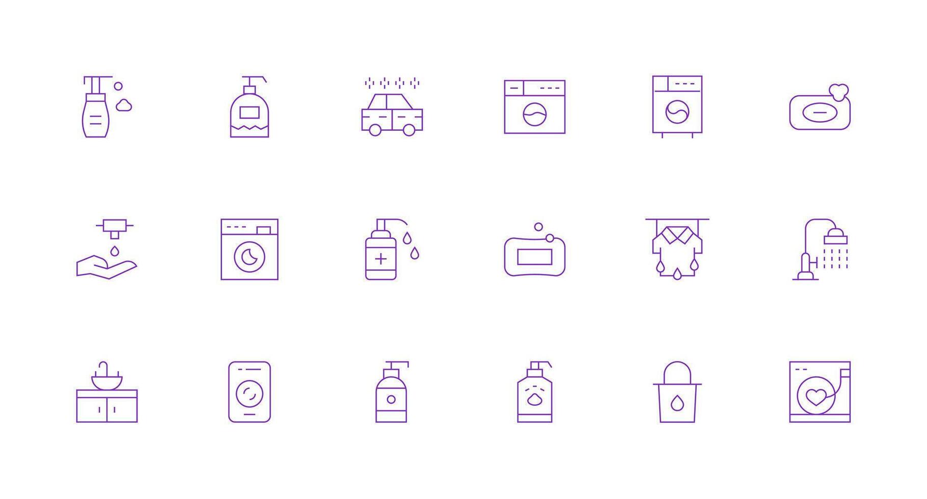 Wash Design Icons featuring 18 in Minimal Line Style Minimal Icon Set for Interface Projects vector